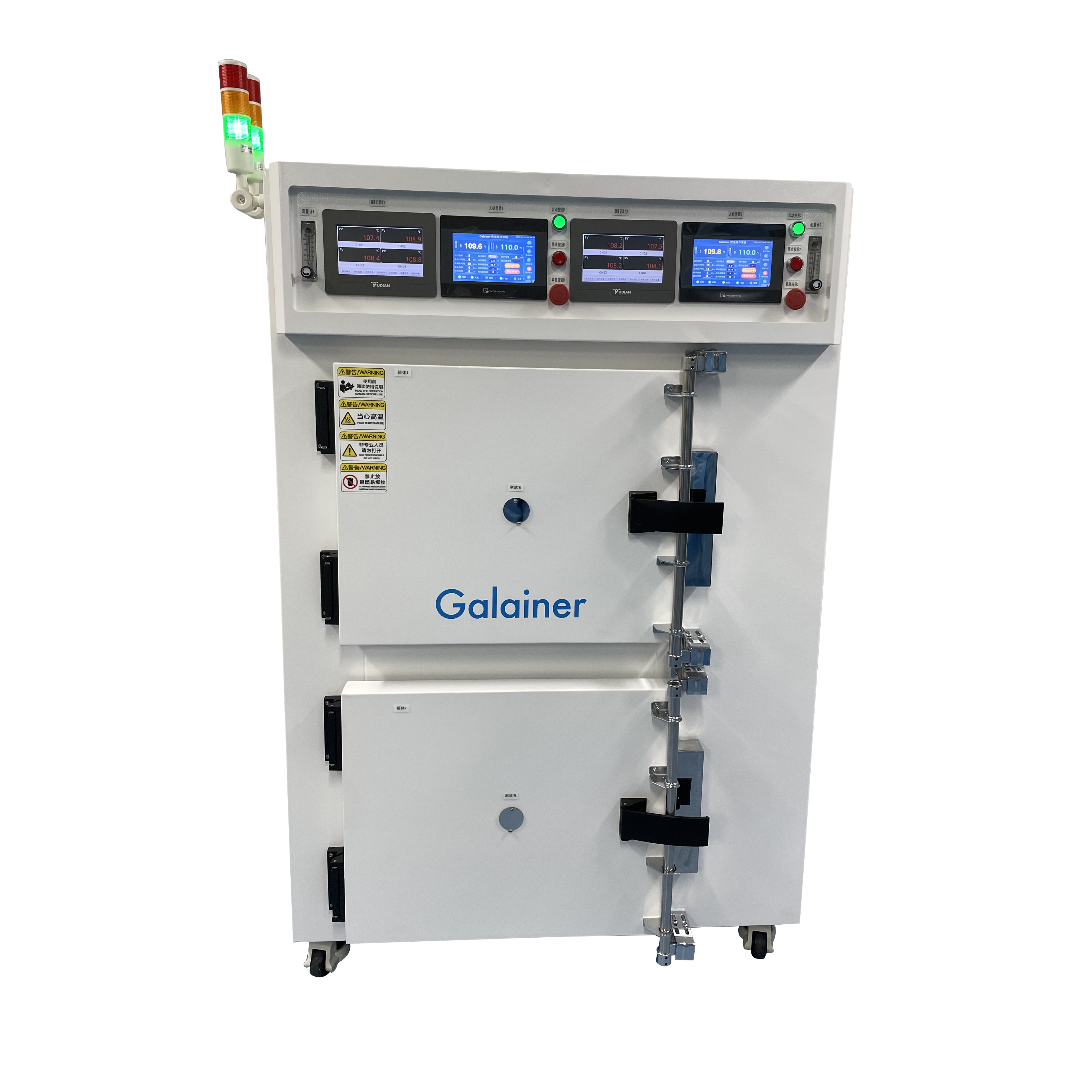 采用进口数字型智能温度控制器,定值恒温控制模式,PID自动演算,控温精度±0.2℃,带传感器断线报警功能,超温抑制,超调功能,控温精准,过冲低,带超温警报保护功能,确保产品运行安全。